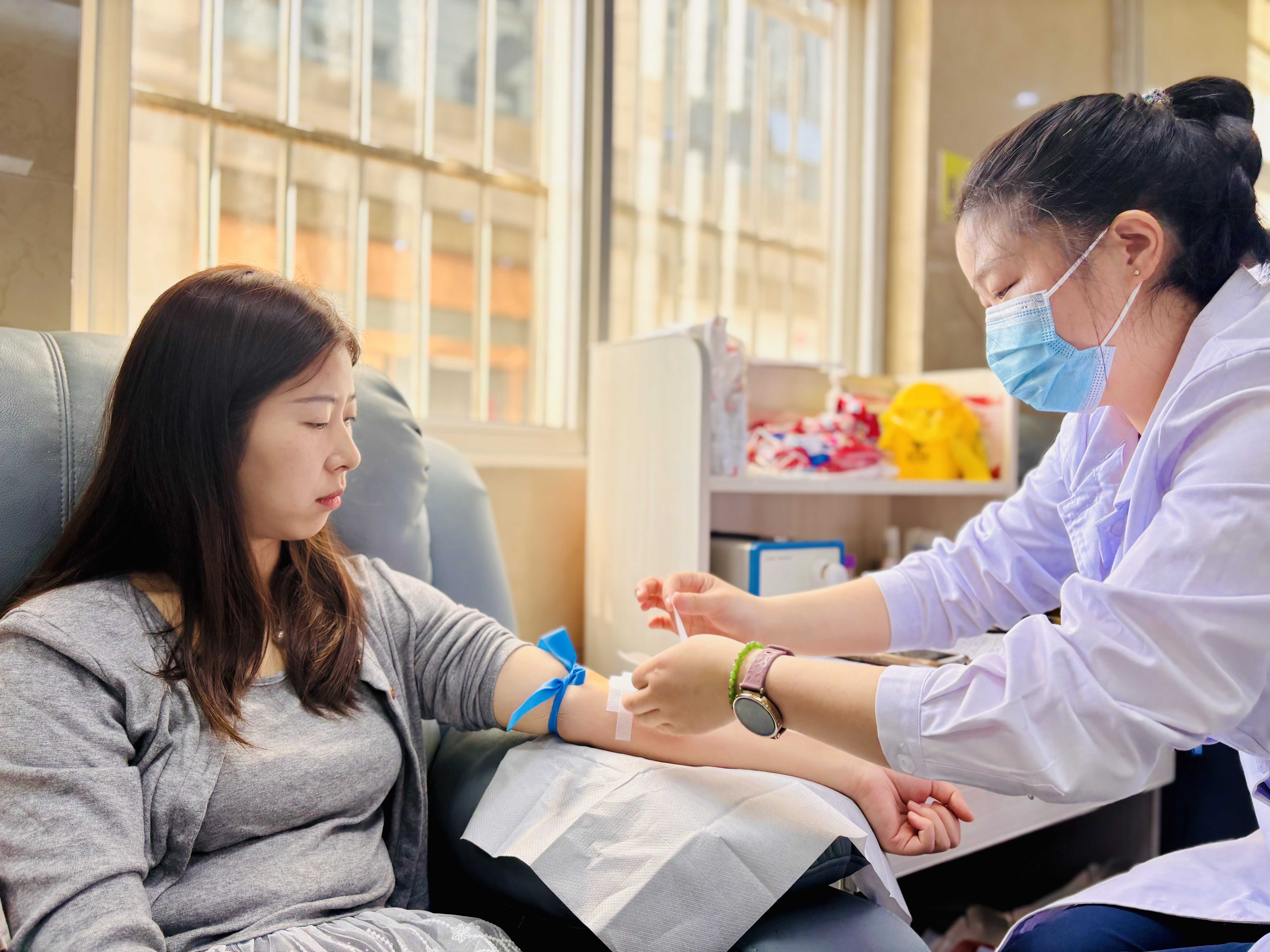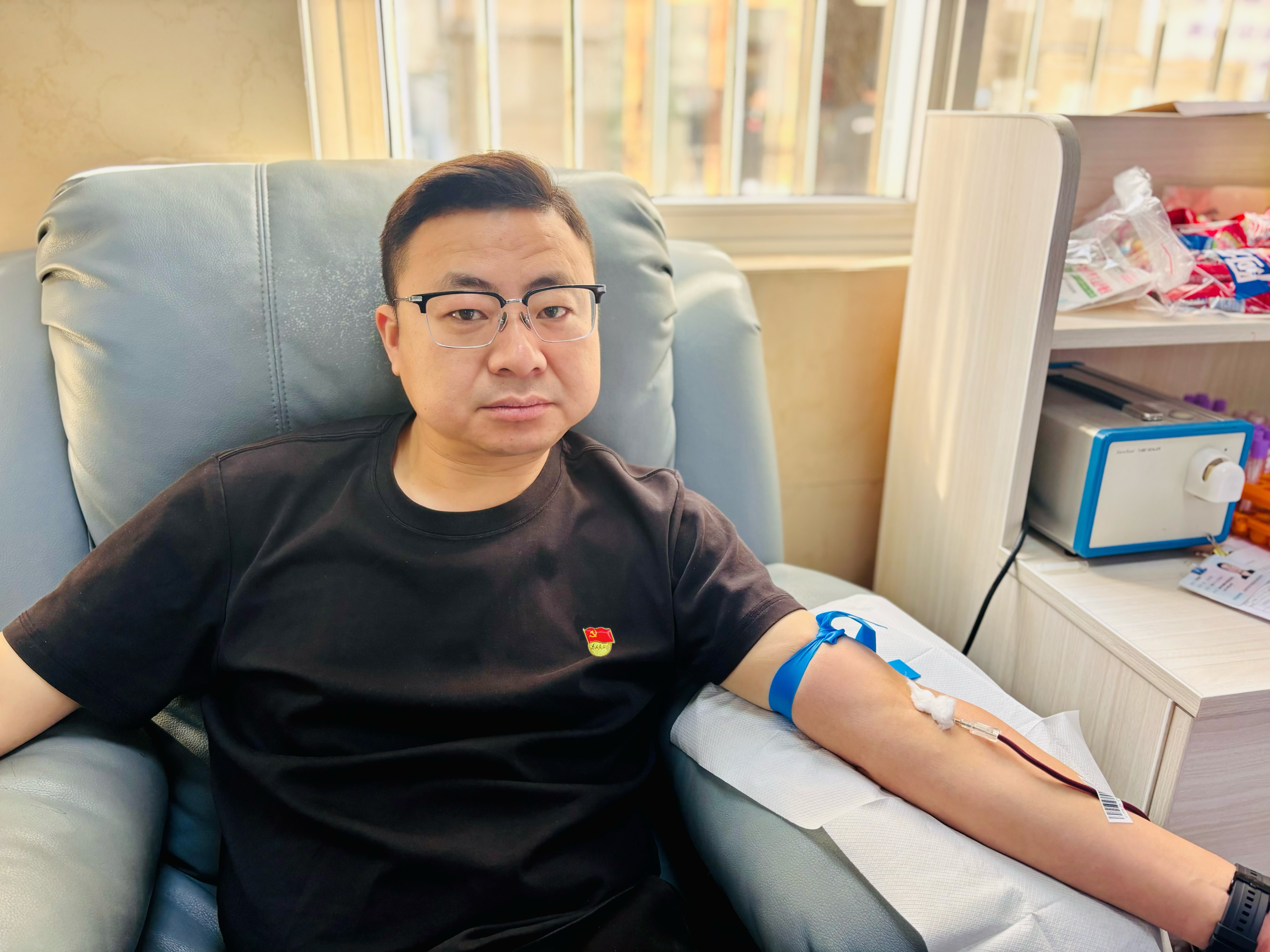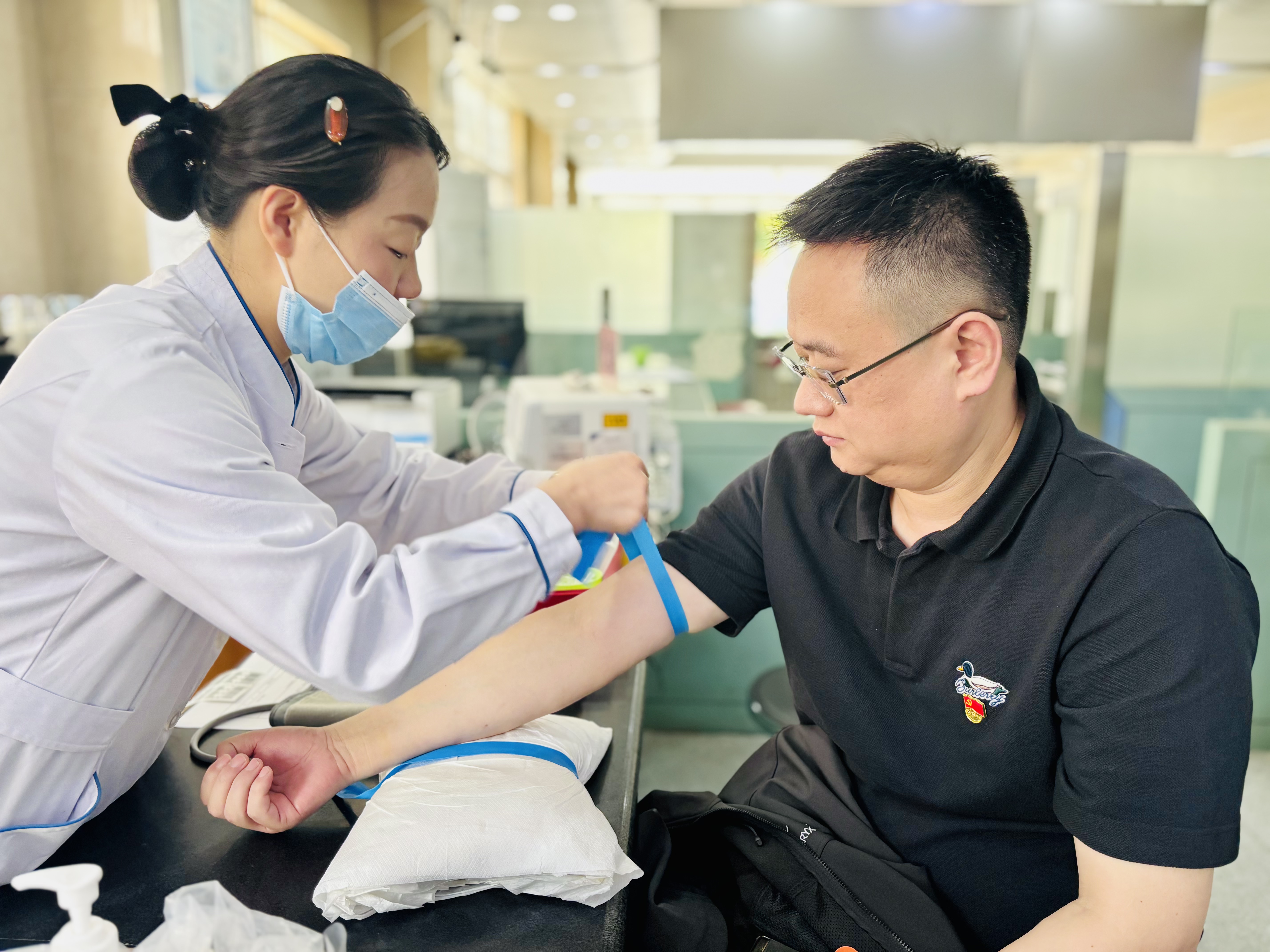 活動中,在市中心血站工作人員的引導(dǎo)下,大家有序完成了信息登記、健康征詢、血壓測量、初篩檢測等工作。隨后,黨員志愿者們積極帶頭,紛紛挽起衣袖、伸出手臂,2300CC的熱血與熠熠生輝的黨徽在這一刻共同譜寫出了生命的贊歌。